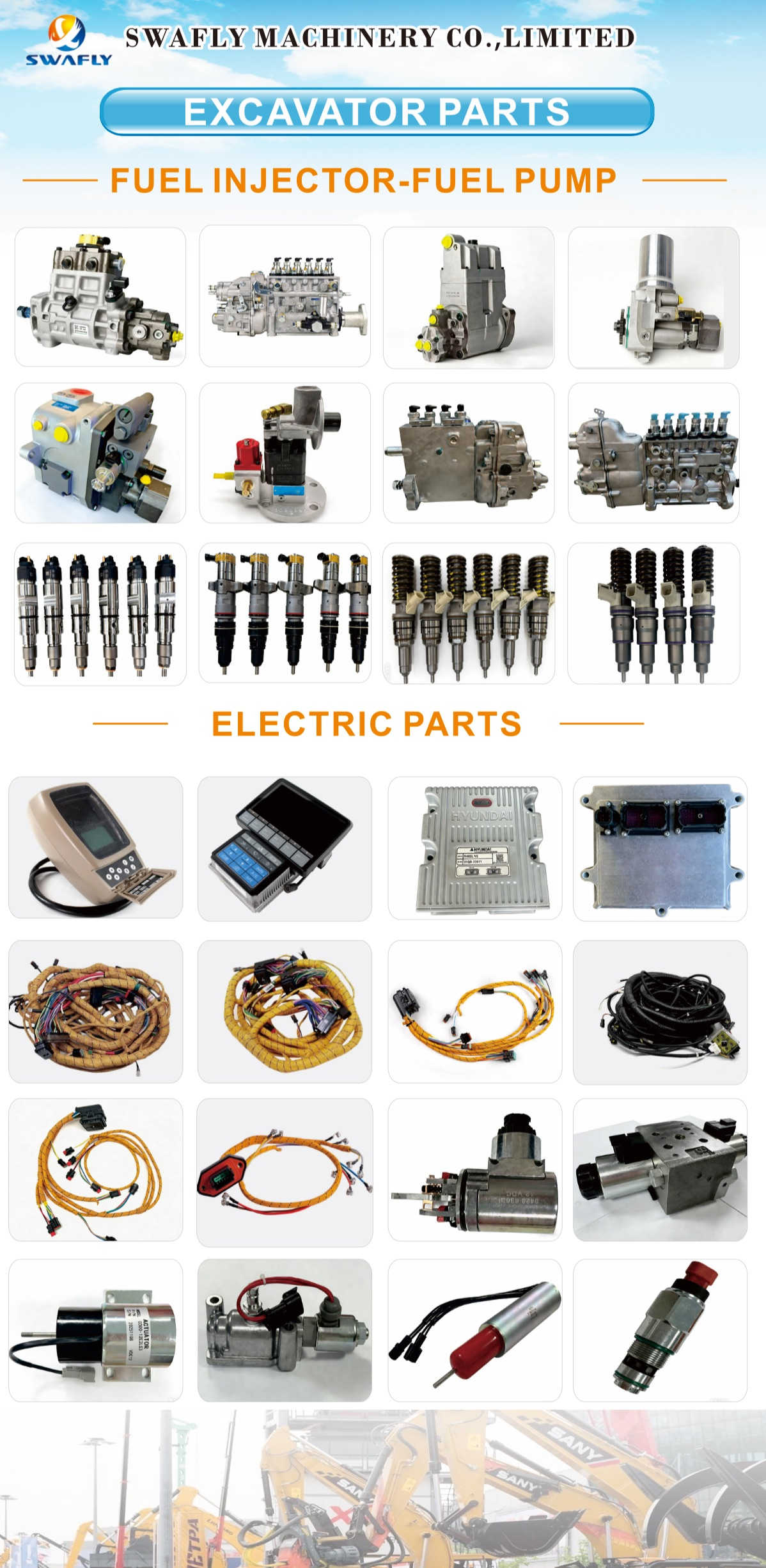 Uued täiendused hõlmavad peamiselt kahte kategooriat. Kütusesüsteemide osas pakub Swafly nüüd palju laiemat valikut sissepritsepumpasid ja kütusepihusteid, mis sobivad populaarsetele ekskavaatoribrändidele, sealhulgas Caterpillar, Komatsu, Hitachi, Hyundai ja Volvo. Olenemata sellest, kas tegemist on sisepumpadega, jaotuspumpadega või ühisanumpihustitega, saavad kliendid otse laost hankida üksikuid seadmeid või täiskomplekte (6 või 8 pihustit).